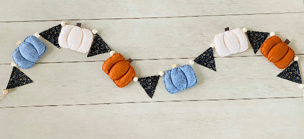 This cute pumpkin garland pattern is easy to assemble and is perfect for a cozy autumn look!