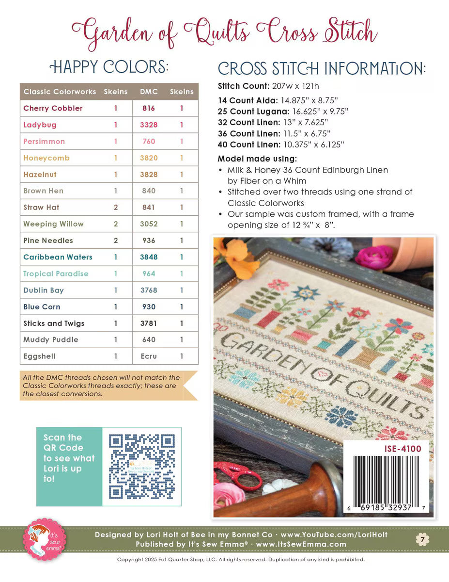 Celebrate your love of stitching and quilting with the Garden of Quilts Cross Stitch Pattern by Lori Holt of Bee in My Bonnet for It’s Sew Emma!