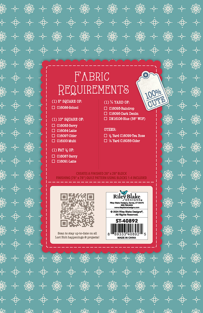 Just add your favorite fabrics to complete the block. Collect all four seed packets for a stunning quilt project. Optional quilt finishing instructions are included inside every packet.