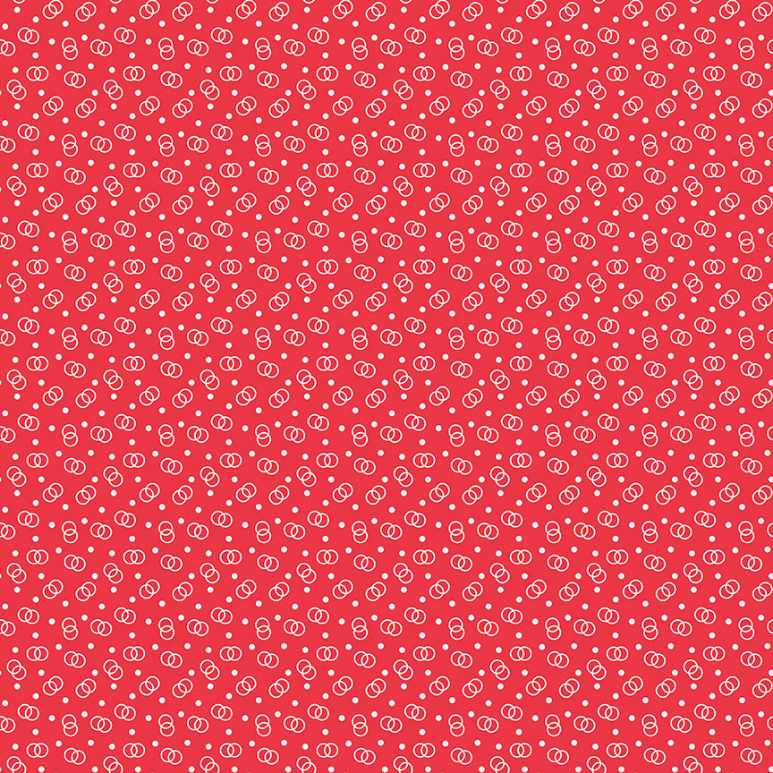 Cook Book in Cayenne for Riley Blake Designs is from a wonderful, sweet line of fabric by Lori Holt! This print features overlapping circles and dots in white on a Cayenne (red) background. A perfect companion for any quilt, sewing or craft project.