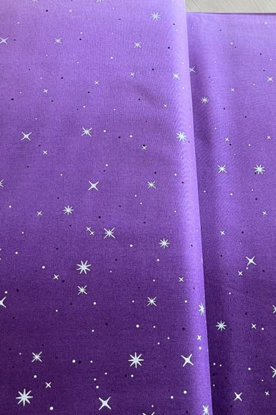 Indulge in the magical wonder of Ombre Fairy Dust in Aubergine by V & Co. for Moda Fabrics. This stunning collection features rich shades of purple with a sprinkling of shimmering metallic silver stars, and is just beautiful.